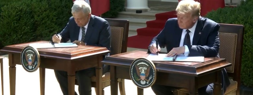 Andrés Manuel López Obrador y Donald Trump firmaron la Declaracion Conjunta, tras ofrecer un mensaje en el Rose Garden de la Casa Blanca.