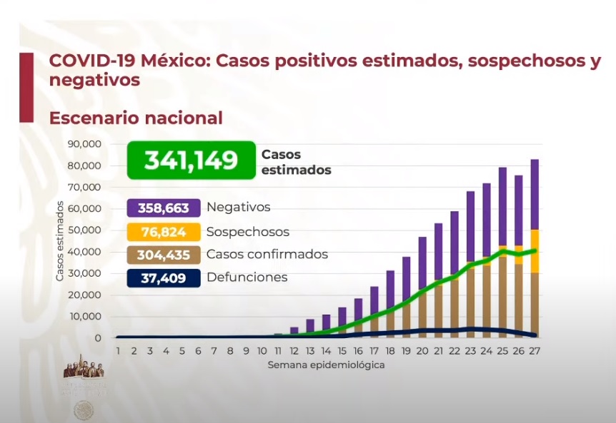 En su informe sobre el estado de la pandemia de covid-19, el secretario de Salud, Hugo López-Gatell afirmó que la velocidad de contagio va a la baja y que la capacidad del Estado para brindar asistencia a los enfermos graves sigue estable, con la expansión hospitalaria.