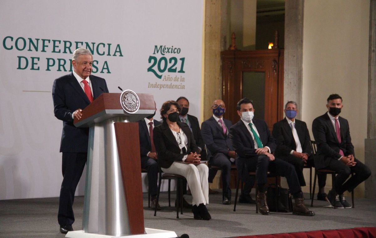 El presidente Andrés Manuel López Obrador da inicio a La Mañanera desde Palacio Nacional.