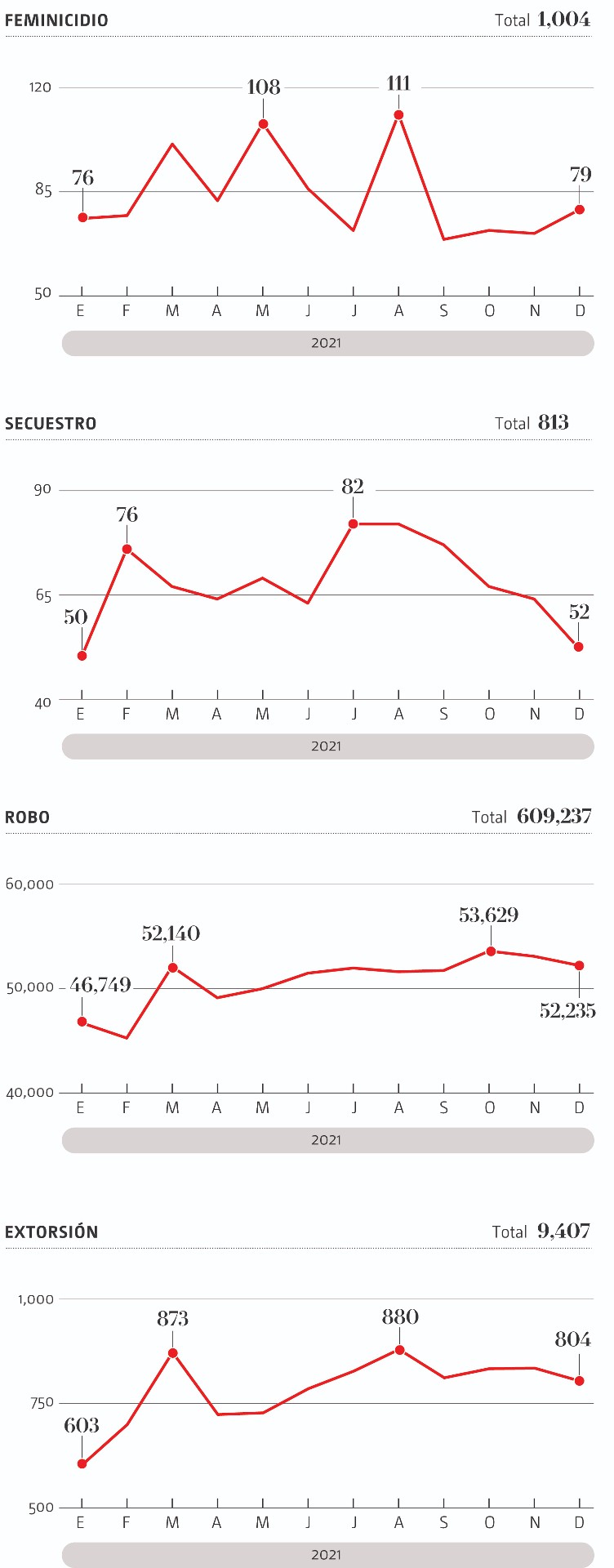 En tanto, reconoció que se debe mejorar el trabajo en delitos que registran incrementos, tales como el robo a transeúnte (9.3 por ciento), robo en transporte público individual (12.6 por ciento), extorsión (12.3 por ciento) y violación (28.1 por ciento).