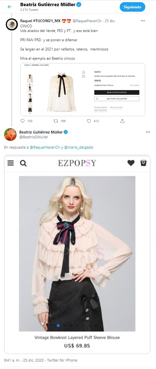 Sin embargo, sin mayor comentario, Gutiérrez Müller respondió a las críticas con una imagen de la tienda en donde adquirió la blusa, aludiendo a que el precio no superó los mil 400 pesos (69.85 dólares)