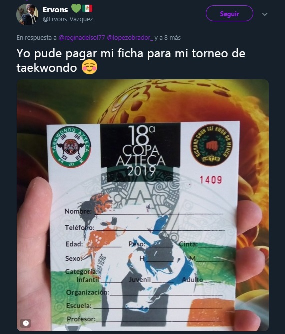 En esa misma publicación, otro usuario le respondió que él ya pudo pagar su ficha para su torneo de Taekwondo.