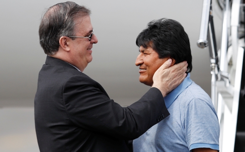 Ebrard al recibir a Evo Morales en el AICM tras su salida de Bolivia | AP