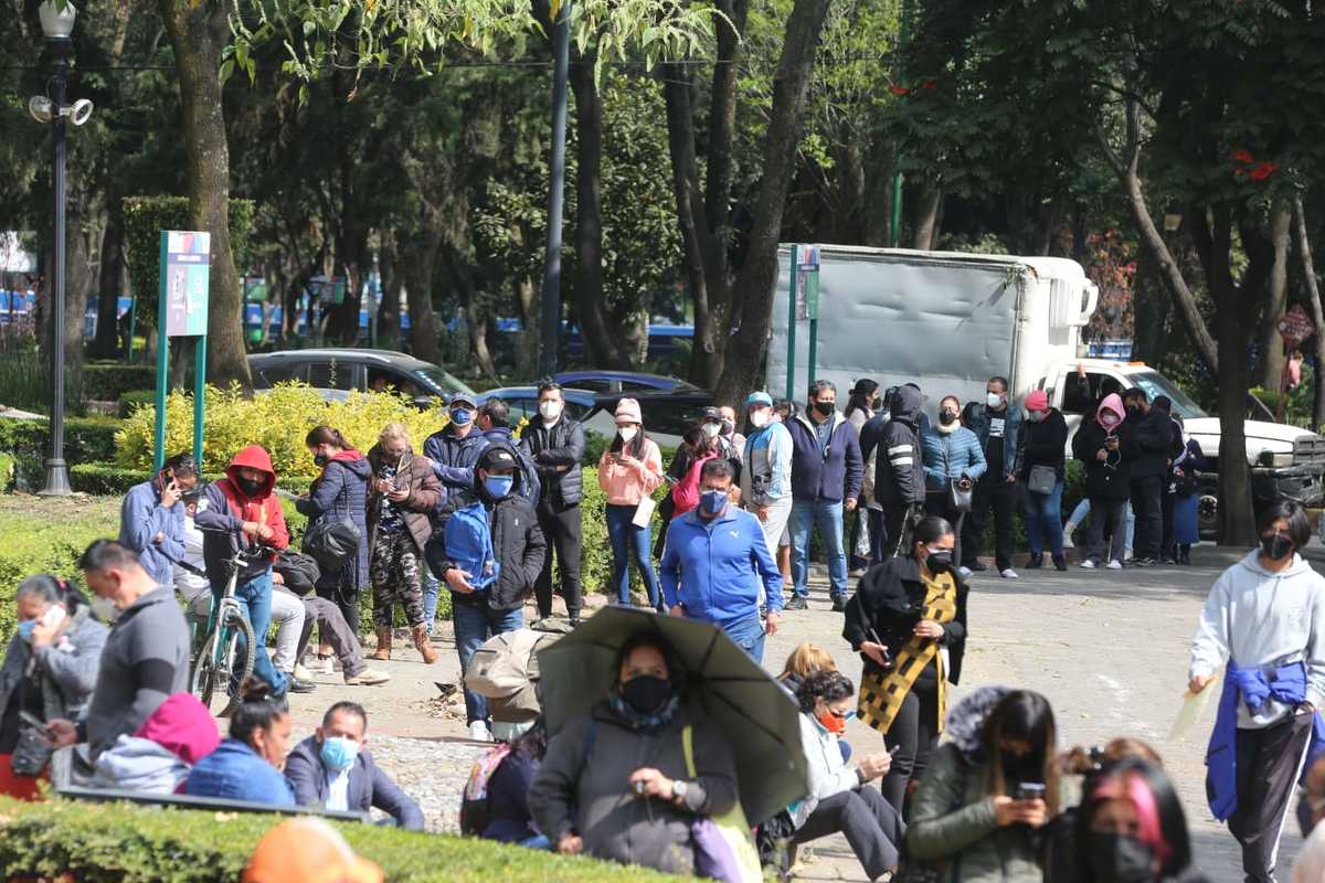 Por eso, porque los costos son menores a los que hay en farmacias privadas y laboratorios, donde la prueba rápida llega a los 600 pesos, es que la explanada de Benito Juárez luce así, llena, desbordada, con una fila que serpentea entre los arbustos y se extiende entre las sombras de los árboles y los rayos del sol de las fuentes.