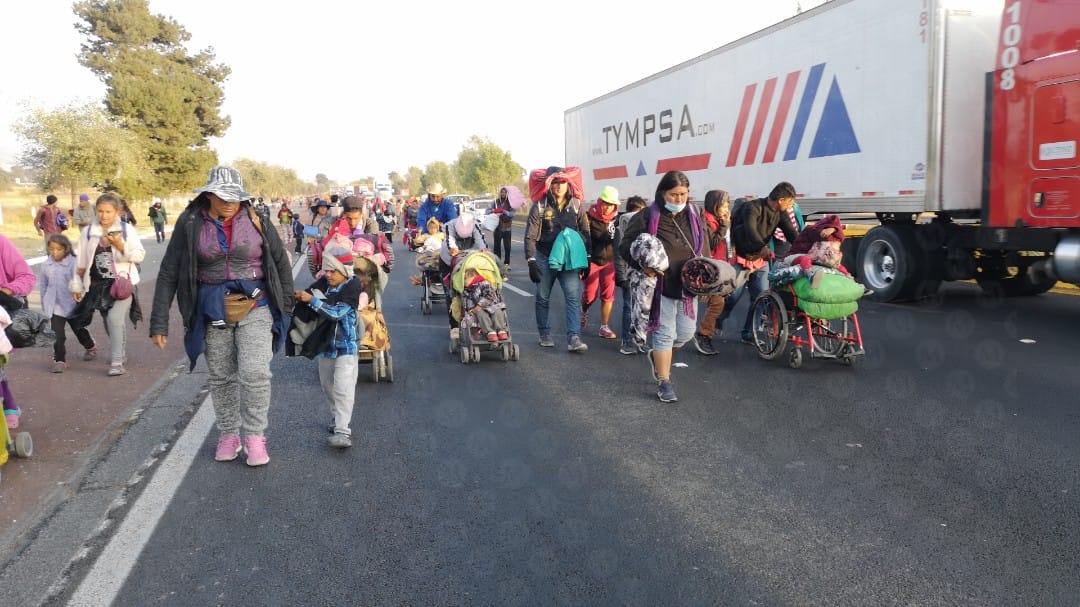 Tras pernoctar en el Gimnasio Rosendo Vázquez, en el Centro de San Martín Texmelucan, Puebla, la caravana migrante, inició su recorrido por la autopista México-Puebla rumbo a la Ciudad de México.