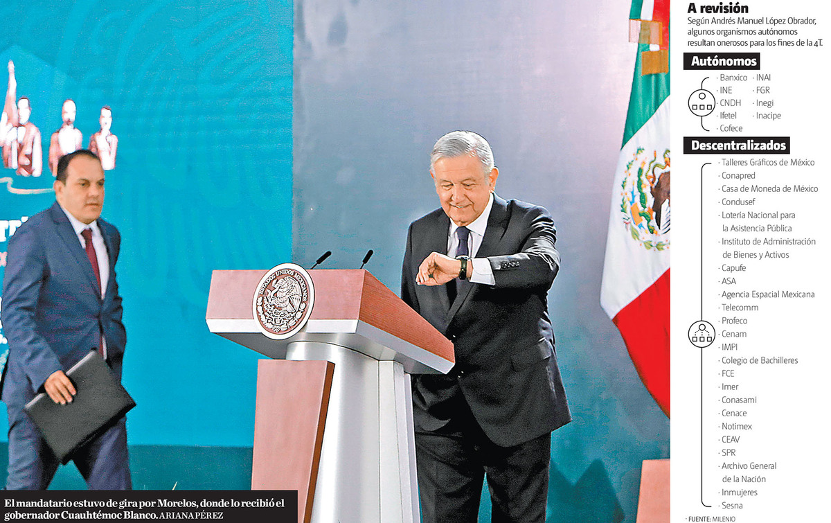 El presidente Andrés Manuel López Obrador anunció la revisión de 100 organismos autónomos que dependen del gobierno federal, con la finalidad de desaparecerlos y ajustar la administración a la nueva realidad del país.