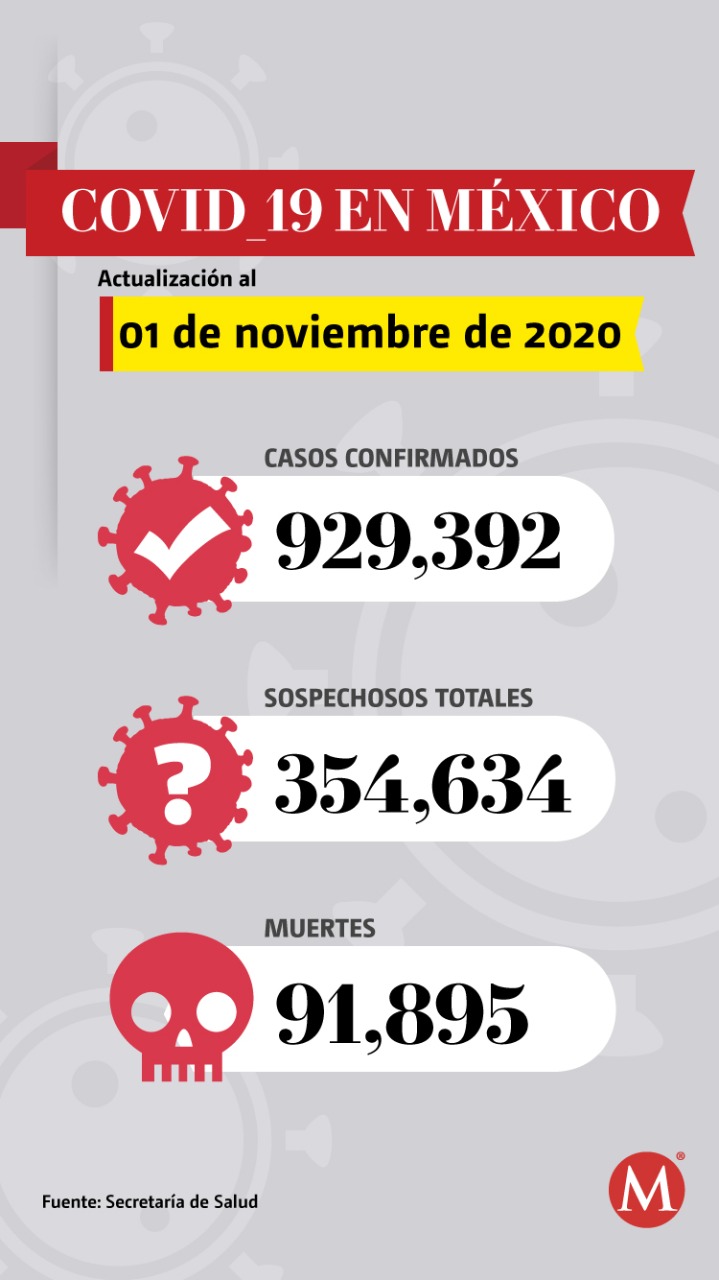 Respecto a las 91 mil 895 defunciones acumuladas confirmadas, 4 mil 269 son sospechosas sin posibilidad de resultado, 459 son sospechosas sin muestra y 10 mil 520 no tienen muestra.