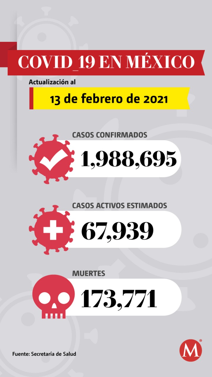 México registró mil 214 nuevas muertes de covid-19 en un solo día, de acuerdo con el reporte de la Secretaría de Salud que dio a conocer las cifras de la pandemia en el país al 13 de febrero de 2021.