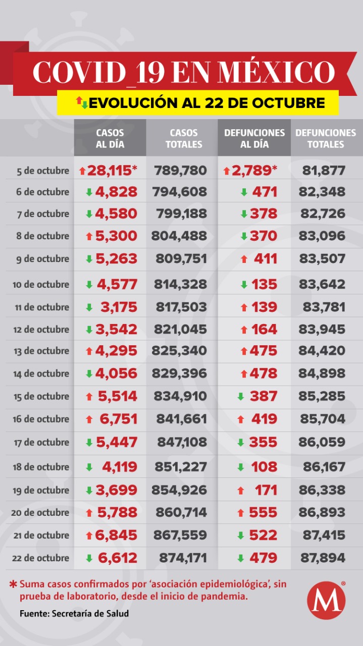 José Luis Alomía, director general de Epidemiología, informó que al corte de hoy se registraron en el sistema 479 nuevas muertes y 6 mil 612 nuevos casos de covid-19.