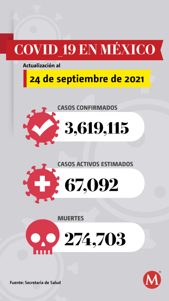 México sumó 564 nuevas muertes por covid-19 y 10 mil 139 contagios en las últimas 24 horas, con lo que se acumulan 3 millones 619 mil 115 de casos y 274 mil 703 decesos, de acuerdo con el comunicado de la Secretaría de Salud dado a conocer esta tarde.