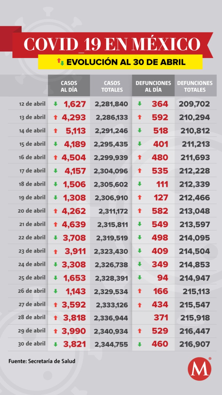 México suma 216 mil 907 muertes por coronavirus SARS-CoV-2 y dos millones 344 mil 755 casos confirmados, de acuerdo al informe de la Secretaría de Salud, dado a conocer por Ricardo Cortés Alcalá, director de Promoción de la Salud.