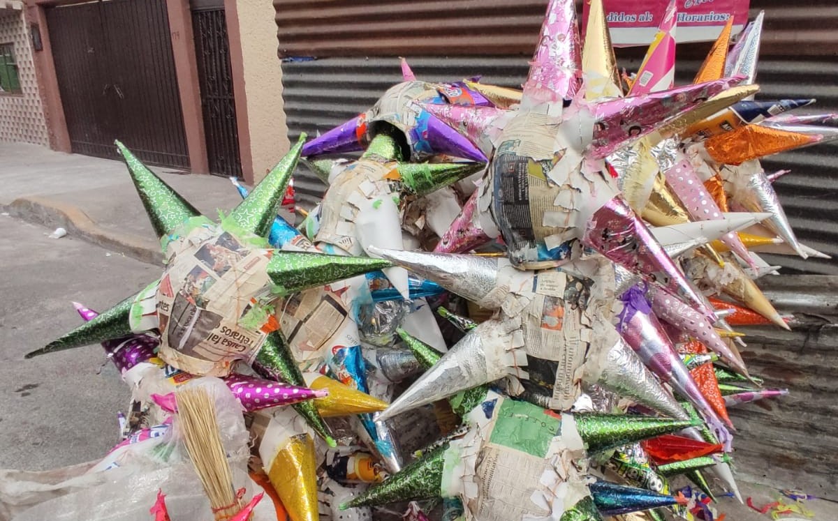 "Fue la primera posada y ya no teníamos que vender, nosotros pensamos que como ahorita si duró más tiempo el semáforo en verde, los revendedores y gente que ya sabe que hacemos piñatas aquí en la colonia Agua Azul, vinieron a comprarnos".