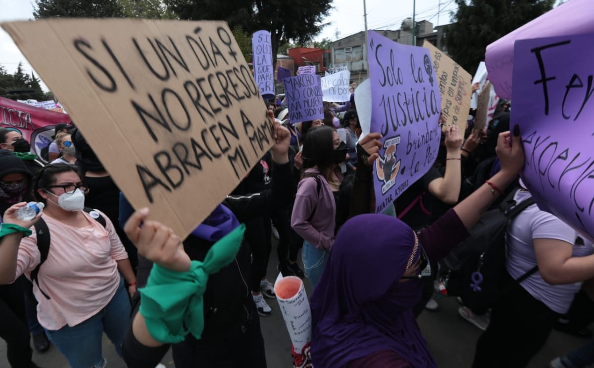 Alzar la voz, hacer valer los derechos de mujeres y erradicar un sistema patriarcal, fueron algunas de las peticiones durante la marcha en la capital mexiquense este 8 de marzo de 2022.