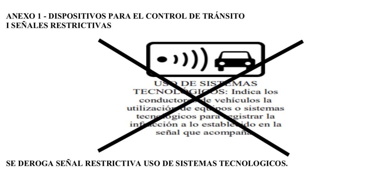 En la publicación se detalla que queda sin efecto la señal restrictiva de uso de sistemas tecnológicos para registrar una infracción, es decir, una fotomulta.
