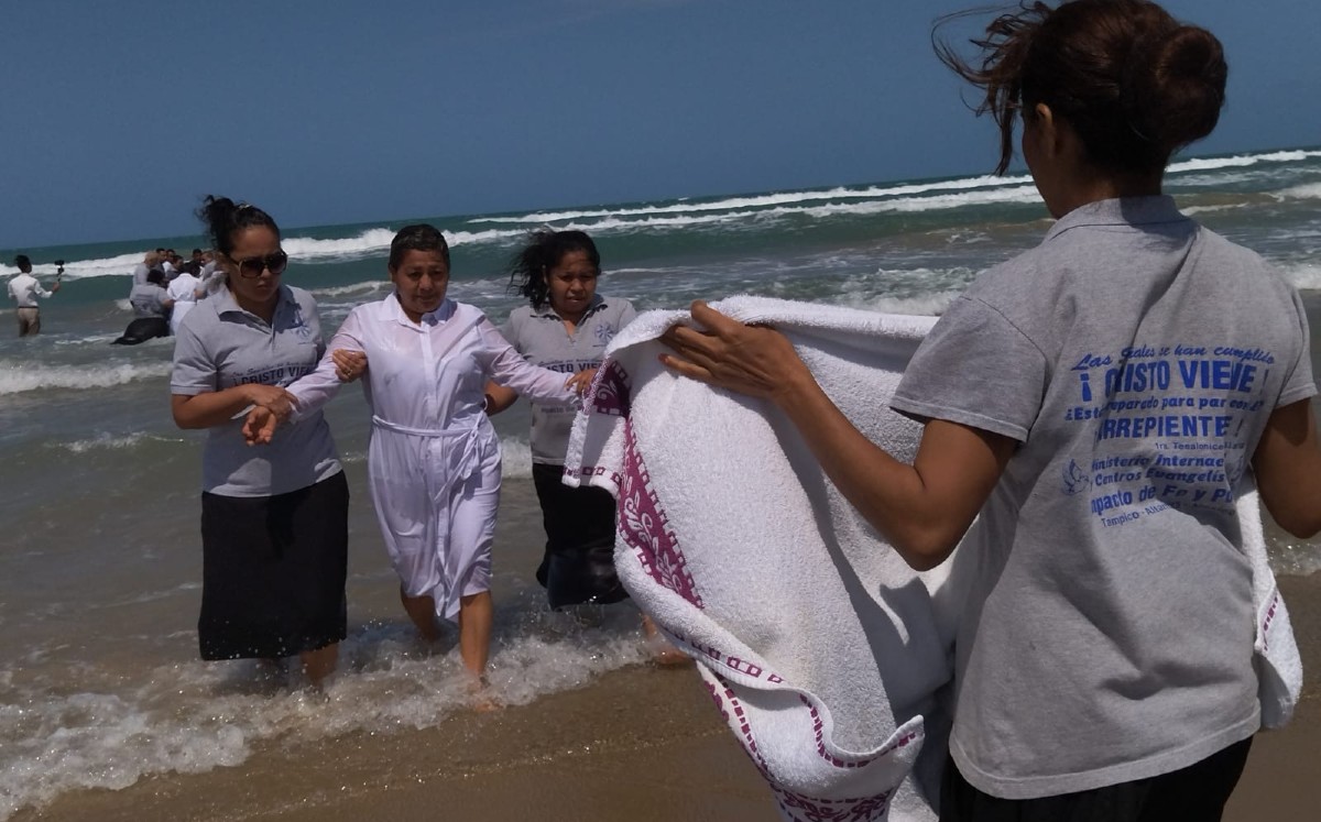Visitantes de Toluca, Monterrey, norte de Veracruz y sur de Tamaulipas, que decidieron ser bautizados, por el pastor y apóstol Ignacio Ávila Santiago, de la Iglesia de Impacto de Fe y Poder de Tampico.