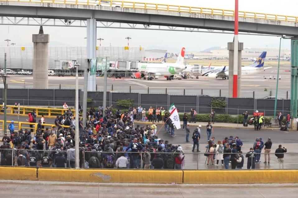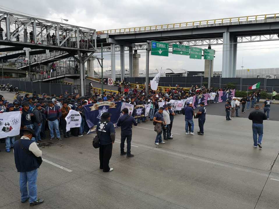 El AICM informó que la manifestación afecta el acceso de la Terminal 1, ubicada en Circuito Interior - Boulevard Puerto Aéreo, por lo que pidió a los usuarios tomar precauciones.