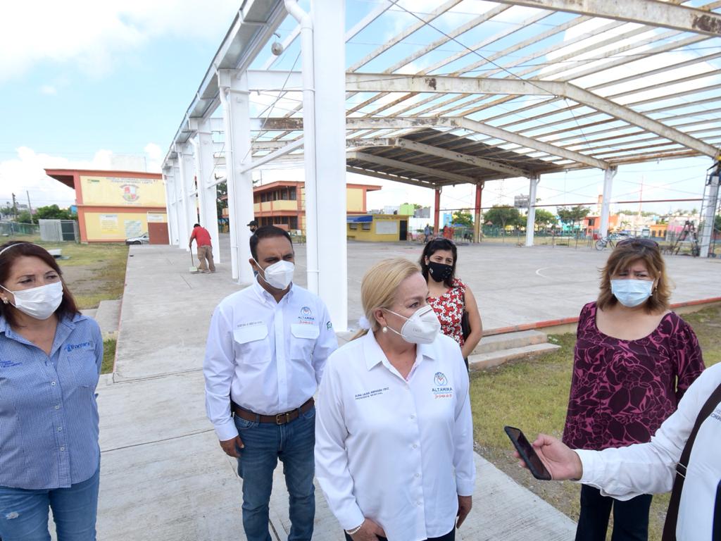 Cumpliendo con hechos y resultados a los compromisos contraídos con el rubro de la educación y en atención a lo aprobado en el Programa Anual de Obra 2020, el Gobierno Municipal, que preside la alcaldesa Alma Laura Amparán Cruz, viene desarrollando importantes obras enfocadas a fortalecer la infraestructura educativa en Altamira, beneficiando con ello a varias escuelas.