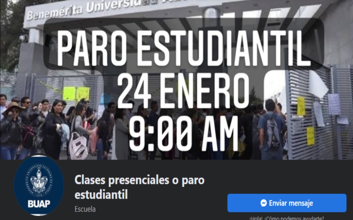 Ante la inconformidad del matriculado, en redes sociales se comenzó la creación de páginas y grupos en el que los universitarios convocan a realizar el "Paro estudiantil 2022" con fecha para el lunes 24 de enero, día en el que regresarían, en la entrada de avenida San Claudio en Ciudad Universitaria, con el objetivo de que las autoridades universitarias consideren su regreso a clases presenciales.