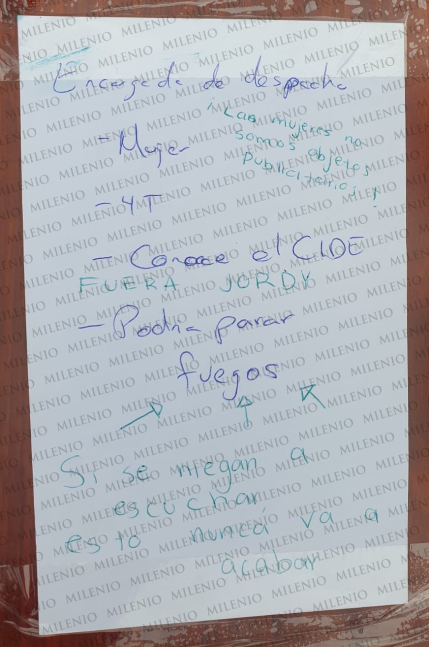 Los estudiantes también exhibieron una hoja que presuntamente serían anotaciones de Romero Tellaeche en la que busca una encargada de despacho que sea mujer afín a la cuarta transformación.