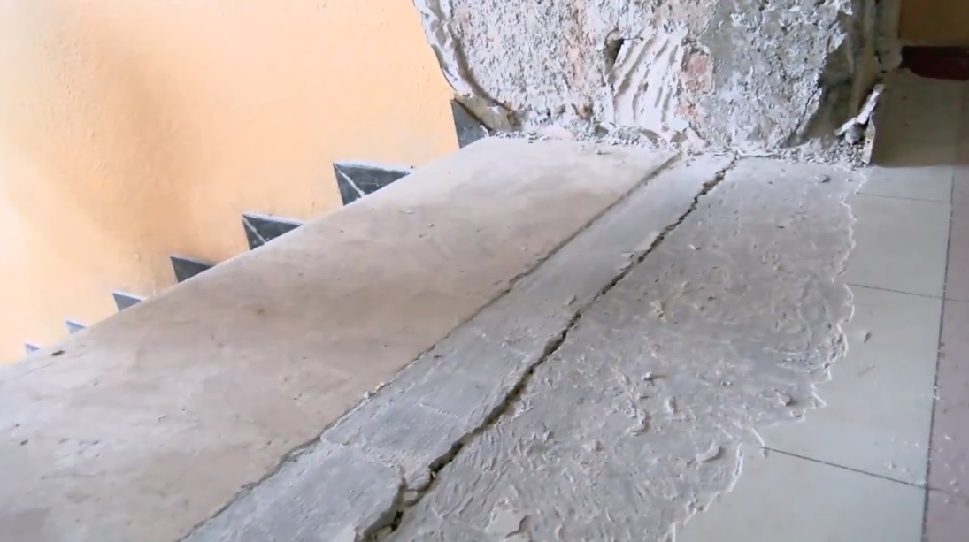 La construcción quedó dañada principalmente en las columnas, las escaleras y los muros, muchos de ellos, agrietados y separados ligeramente de los bordes de la construcción, principalmente en el segundo piso, que fue la zona más afectada.