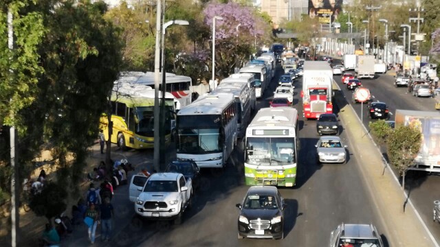 Lo anterior sumado con la presencia de manifestantes y los autobuses estacionados, que dejan libres, sólo dos carriles en ambos sentidos complican el avance de los vehículos en esta zona de la Ciudad de México.