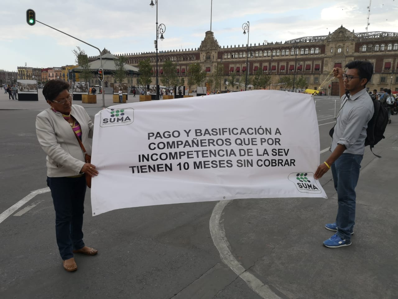 Con pancartas protestan al exterior de Palacio Nacional, donde aseguran que permanecerán hasta ser atendidos por el presidente Andrés Manuel López Obrador.