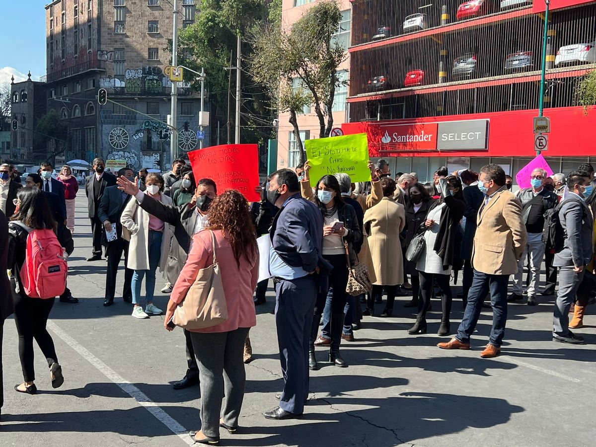 Alrededor de 200 litigantes se manifestaron frente a los Tribunales de la Ciudad de México, ubicada en avenida Niños Héroes de la alcaldía Cuauhtémoc, para exigir el regreso al trabajo diario donde daban seguimiento a sus casos.