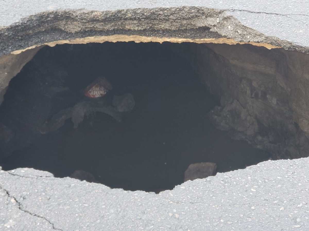 Debido a las fuertes lluvias registradas anoche, esta mañana se reportó un socavón de 30 metros de largo, 4 metros de profundidad y 7 metros de diámetro.