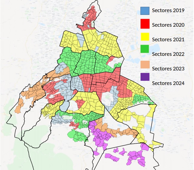 "Tenemos 27 sectores formados en la parte Poniente de Benito Juárez, es la que queda limitada entre el Periférico y División del Norte; ya estamos trabajando en otros 20 sectores, para tener un total de 47, los otros 20 sectores van de División del Norte hacia el oriente, con colindancia con Iztapalapa e Iztacalco", explicó.