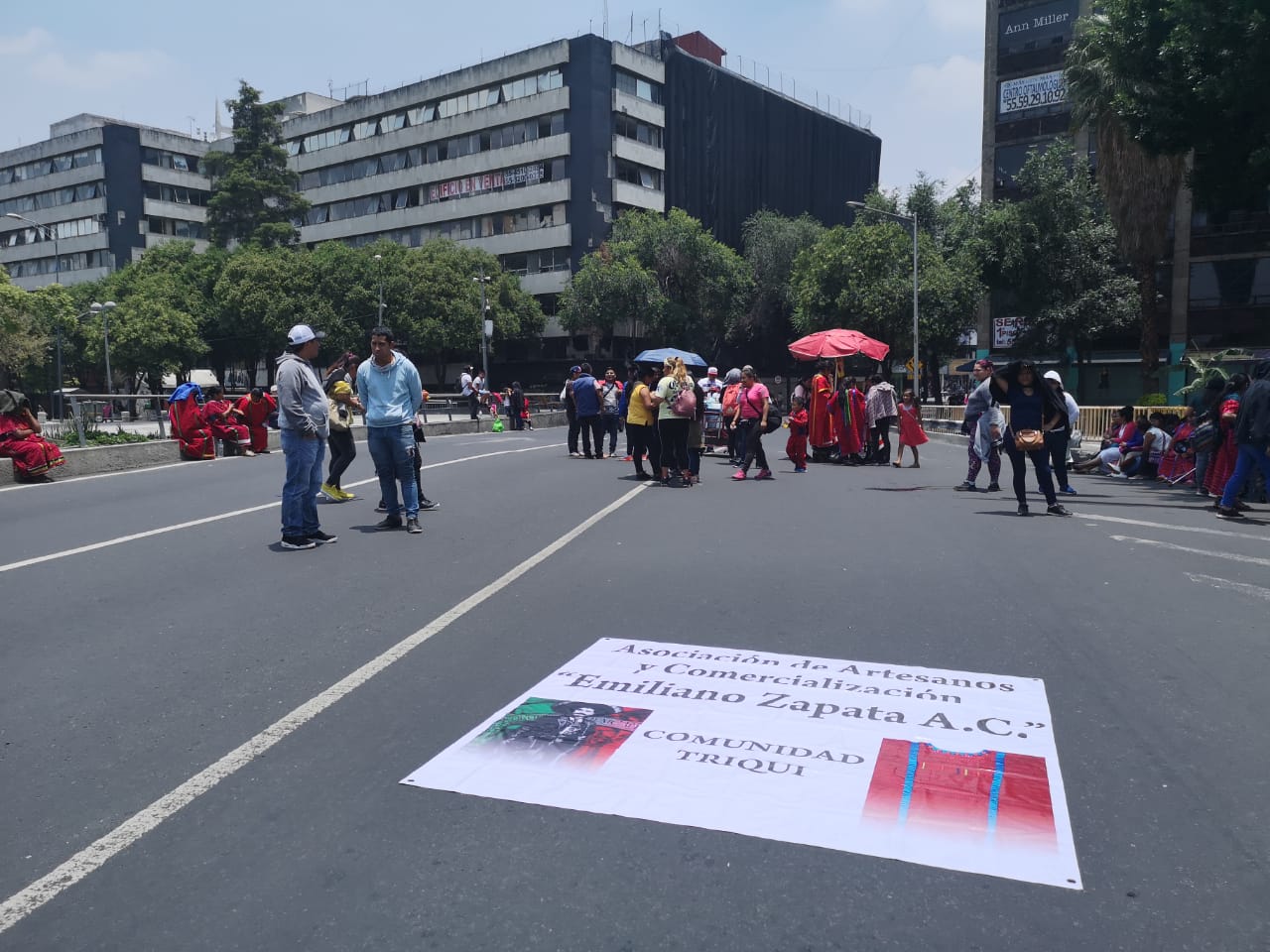 Comerciantes de pueblos originarios bloquearon la avenida 20 de Noviembre y mantienen un plantón bajo los arcos del edificio de Gobierno de la Ciudad de México para exigir permisos para poder trabajar.