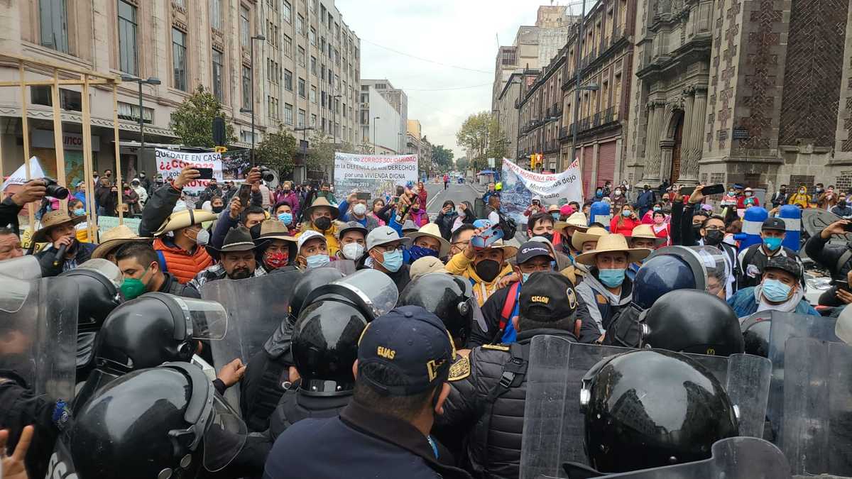 Los comuneros se encontraron con un Zócalo capitalino sitiado por policías capitalinos, pues en el Centro Histórico, la jefa de Gobierno Claudia Sheinbaum, realizará recorridos por la conmemoración del origen de México-Tenochtitlan.