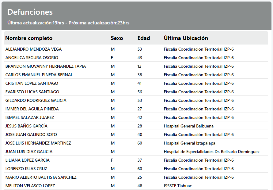 La muerte del niño fue confirmada en la plataforma del gobierno de CdMx, habilitada para publicar y actualizar las listas de personas hospitalizadas, fallecidas, reportadas sin localizar o que ya se encuentran en su domicilio.