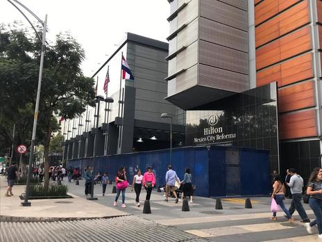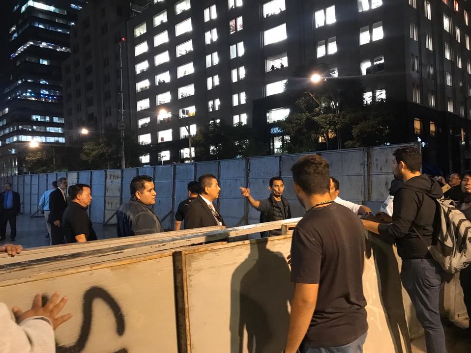 Para evitar actos vandálicos durante la marcha, elementos de la Secretaría de Seguridad Ciudadana colocaron barreras de metal en comercios ubicados en la avenida Juárez, como el Hotel Hilton Reforma.