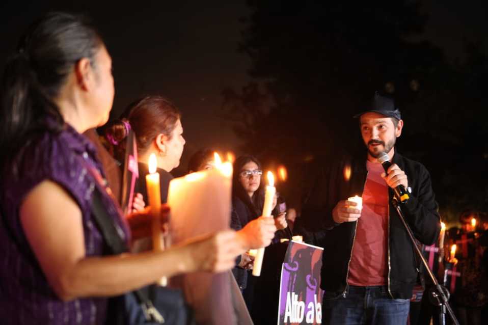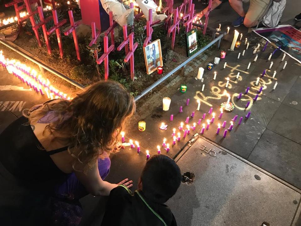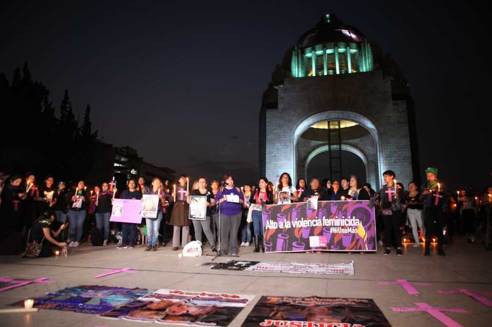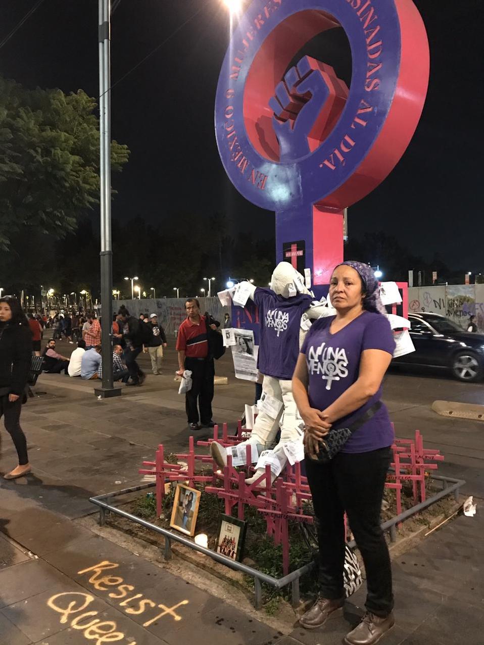 Familiares de víctimas de feminicidio y mujeres desaparecidas colocaron veladoras en la Antimonumenta, localizada en avenida Juárez.