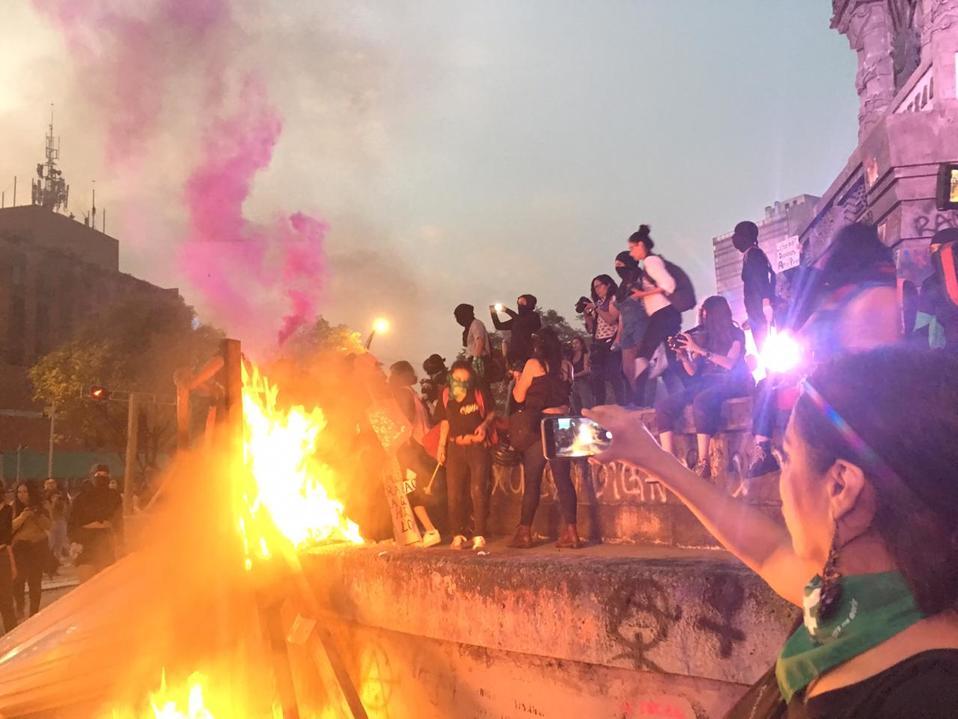 Luego de marchar desde el Ángel de la Independencia, mujeres exigen un alto a la violencia y justicia para los feminicidios.