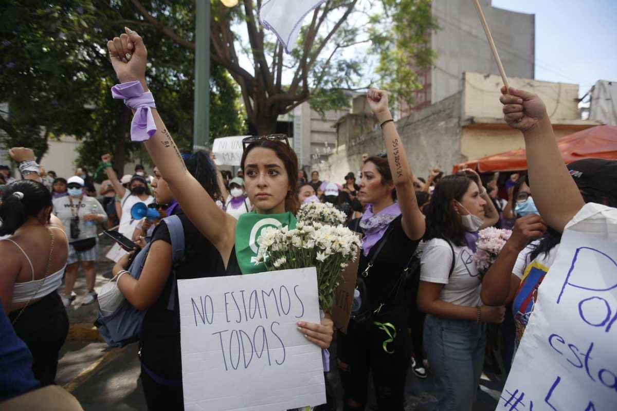 Las manifestantes iniciaron su marcha en el Monumento a la Revolución, en la colonia Tabacalera, mostrando pancartas y gritando consignas.
