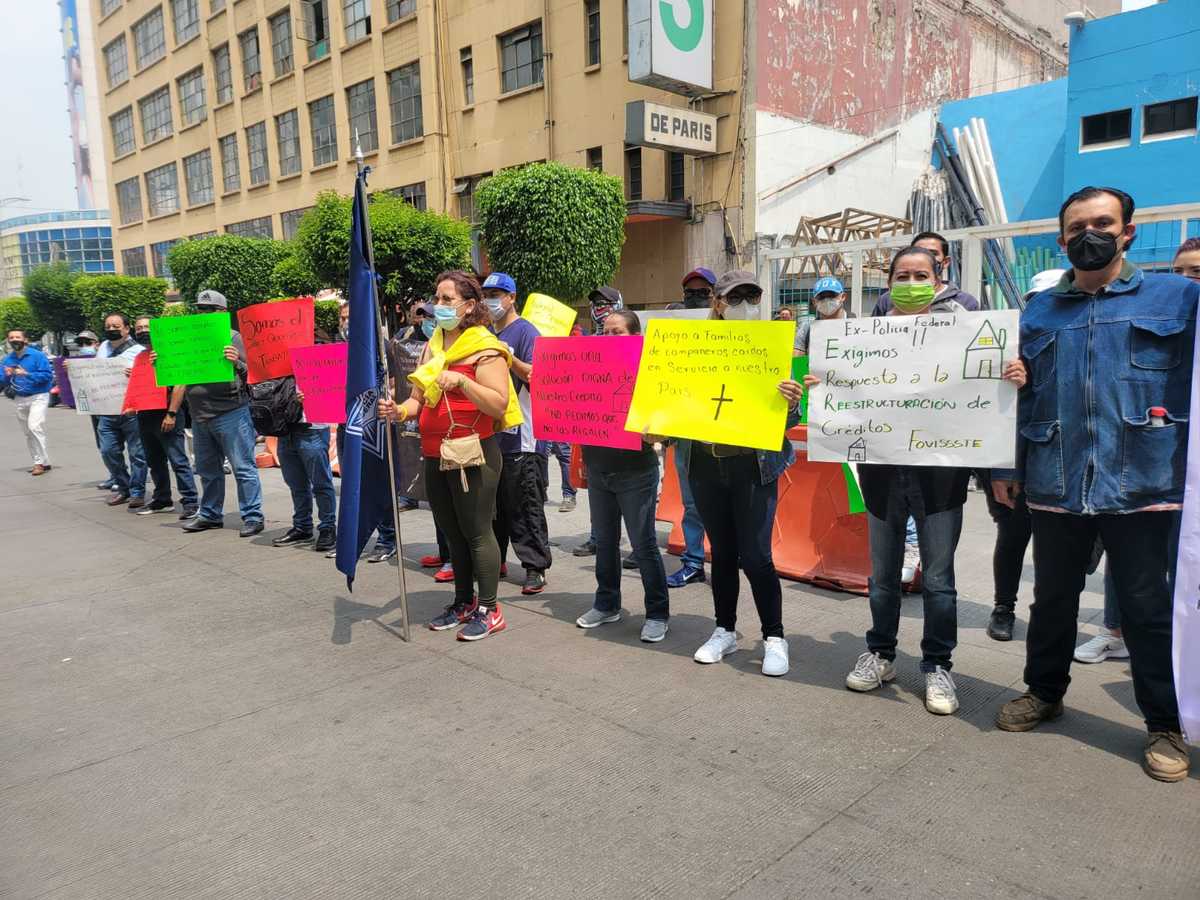 Un grupo de ex policías federales acudieron esta mañana a las inmediaciones del Senado de la República, en la Ciudad de México, para exigir cumplimiento de un pliego petitorio en el que buscan la reestructuración de sus créditos de vivienda con Fovissste y demandan el "cumplimiento de sus derechos".