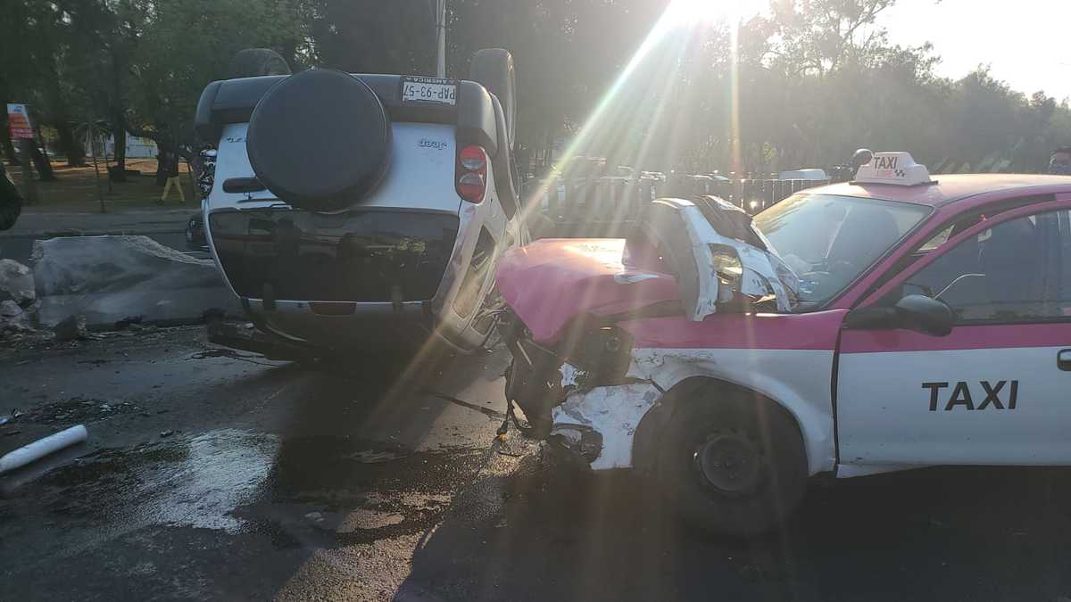 Versiones extraoficiales refieren que la camioneta particular con placas PAP-93-57 del Estado de México, no respetó la luz roja del semáforo y fue impactada por el taxi A-4853-J con cromática de la Ciudad de México.