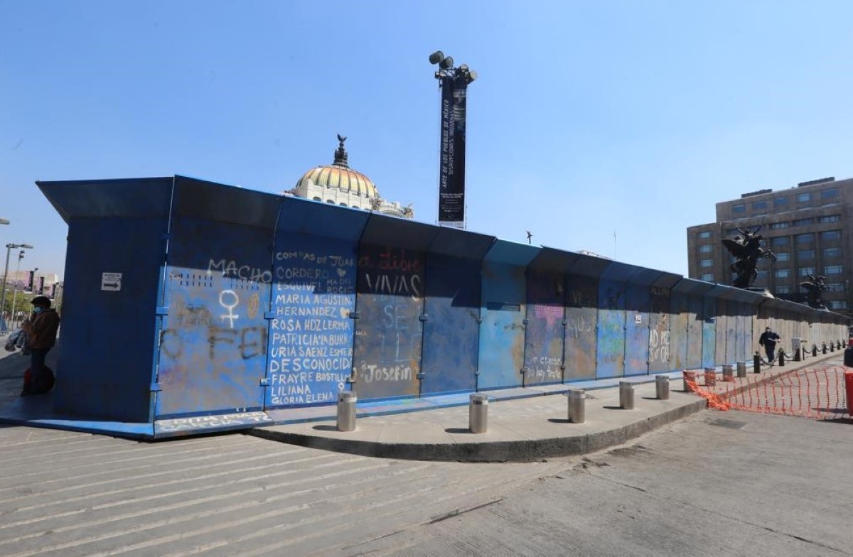 Llegando al Centro Histórico, se ve que recintos como el Palacio de Bellas Artes y monumentos, como el Hemiciclo a Juárez, ya están rodeados de vallas metálicas y tapiales de madera.