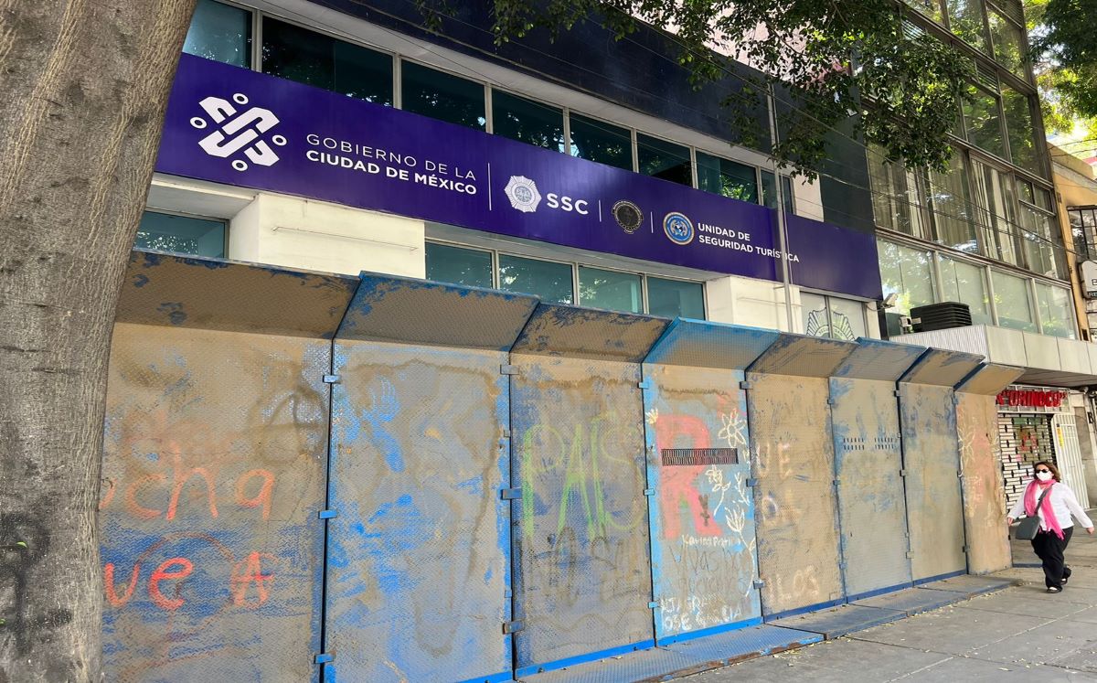 En un recorrido realizado por MILENIO, se observó que el resguardo inicia desde la glorieta del Ángel de la Independencia, específicamente en el cruce de Hamburgo y Paseo de la Reforma, donde se colocaron vallas metálicas frente a una estación de la Policía capitalina.