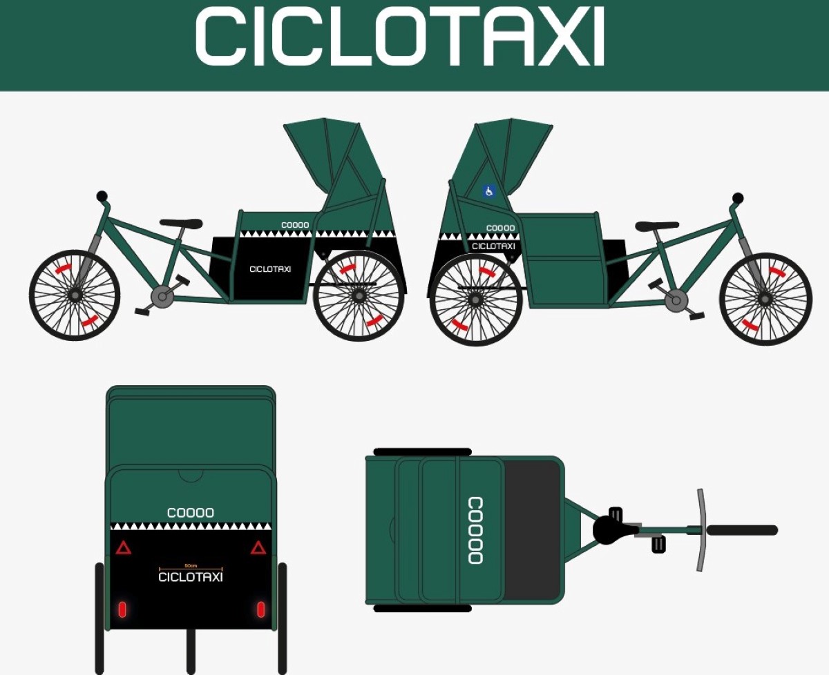 - Ambos modelos de ciclotxi serán color verde con negro y llevarán una tira de triángulos tipo cocodrilo, en alusión a los taxis de los años 50.