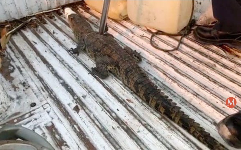 Paseando como si estuviera en casa, elementos de Protección Civil capturaron dentro de un domicilio de Ciudad Victoria, un cocodrilo de metro y medio de longitud.