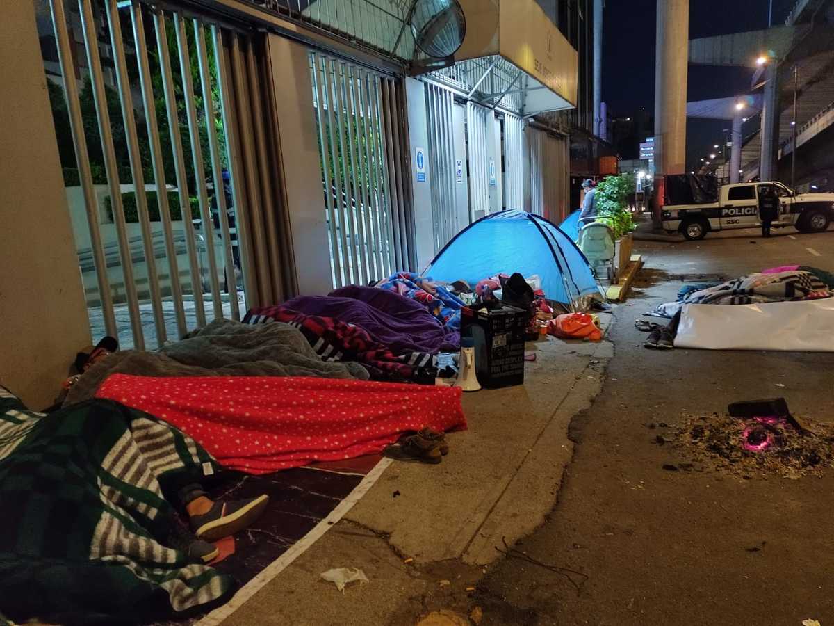 Los manifestantes informaron que tienen una cita programada con autoridades de la CNDH a las 13:00 horas, por lo que mantienen casas de campaña en el acceso principal de la Comisión para ser atendidos.