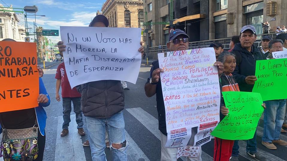Integrantes del Movimiento por los Derechos Constitucionales del Comerciante Popular y del No Asalariado (Modeccos) protestan en el Congreso de la Ciudad de México, en la calle Donceles, colonia Centro, como forma de rechazo a la regulación del comercio.