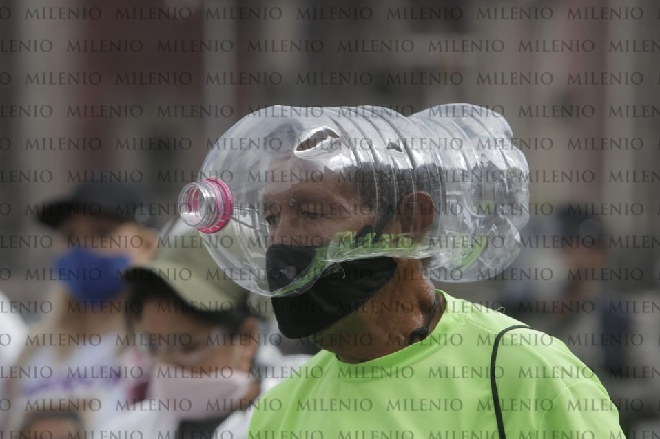 Ante esto, los mexicanos han tenido que ocupar su creatividad para protegerse; tal es el caso de un hombre que fue captado en calles de la Ciudad de México, con una careta singular, ya que fue hecha con un garrafón de agua.