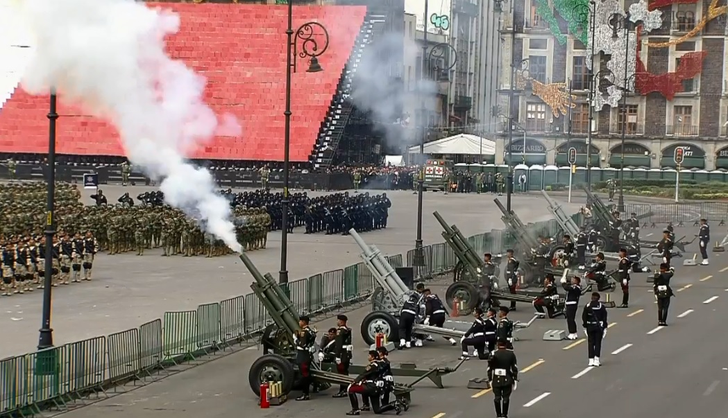Se despliega una mosaico y fuerzas armadas gritan ¡Viva México!