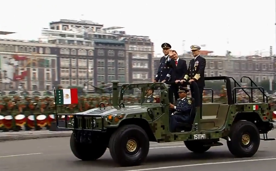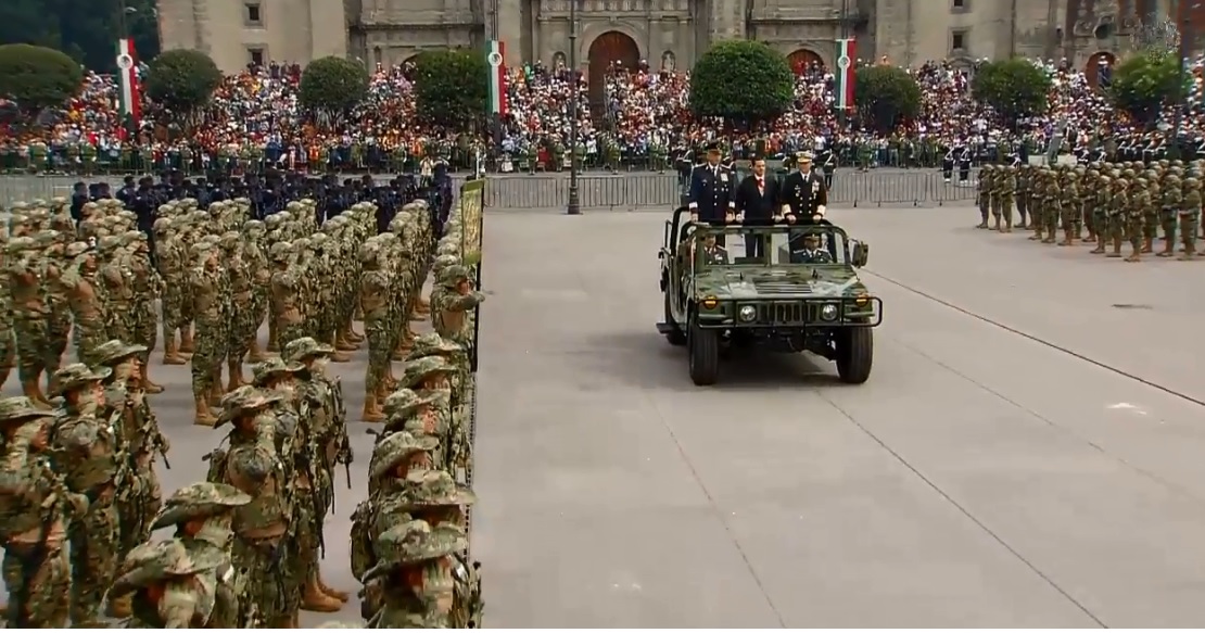 El pase de revista; participan 18 mil elementos de las fuerzas armadas.