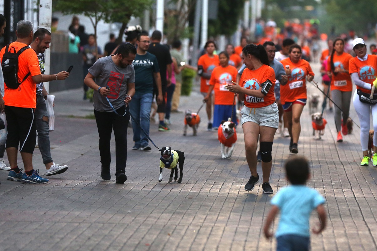 Pasadas las 20:00 horas, se encontraban reunidos en el punto los corredores y las mascotas, para este peculiar evento, que dio arranque unos minutos después de lo anunciado puesto que aún no se detenía la circulación en la avenida.
