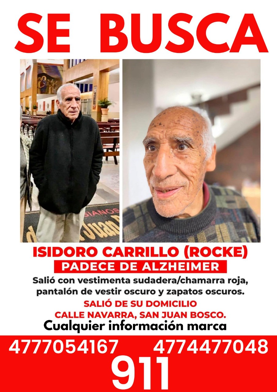 Su hija Silvia Carrillo Mendoza dijo que, derivado de la difusión en las redes sociales donde dieron a conocer la desaparición del señor Isidoro Carrillo Gaona, quien entiende mejor al llamado de “Don Rocke”, de 78 años de edad, usuarios les han informado que lo vieron en varios puntos de la ciudad de Léon.