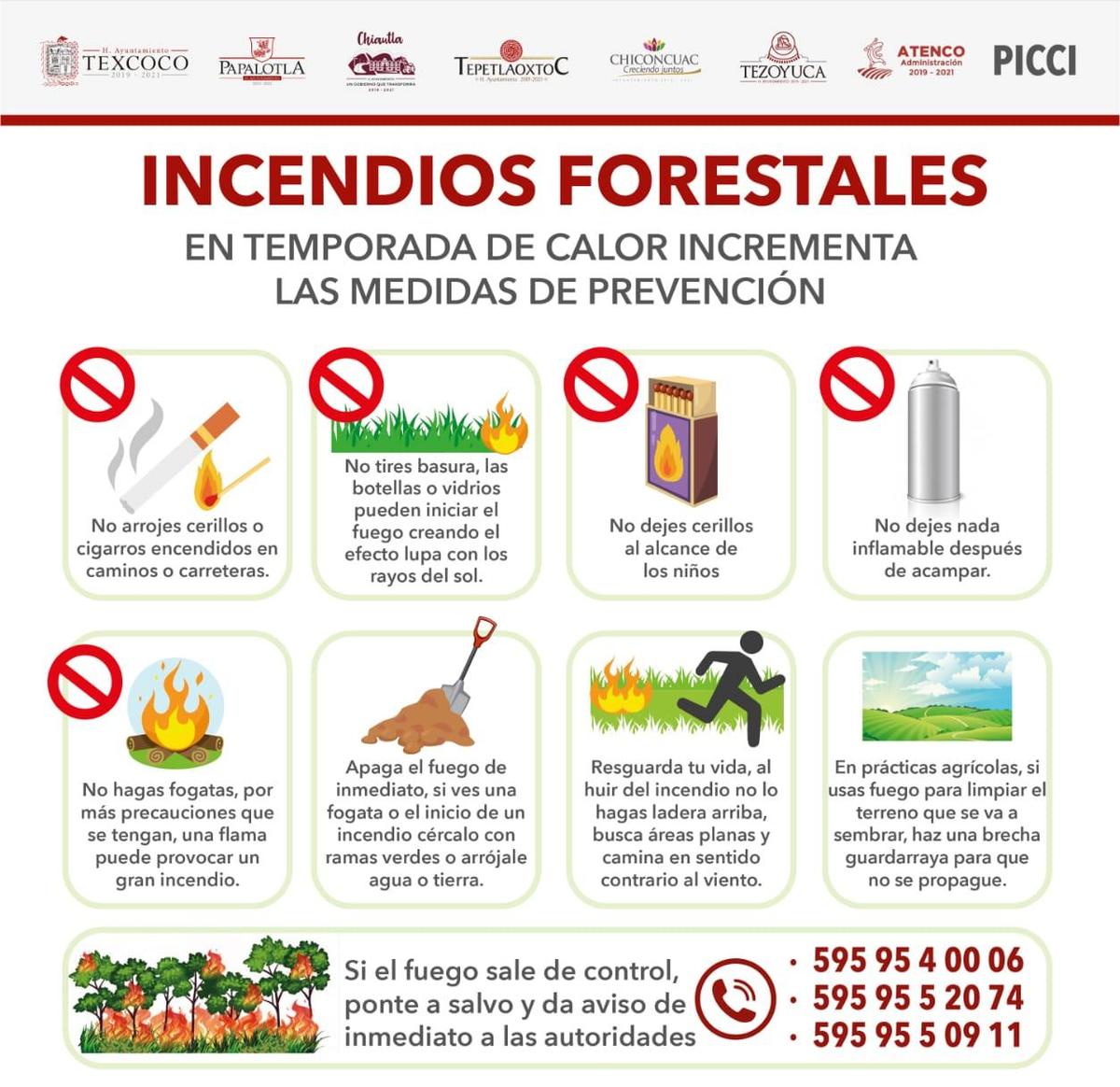 Aunque de estas localidades solo Tepetlaoxtoc y Texcoco cuentan con zonas montañosas, en caso de un siniestro el resto de los municipios también participarán de forma activa para sofocar el fuego en caso de ser necesario.